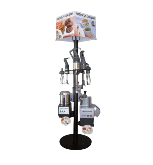 Подставка для миксеров и машин сделана из нержавеющей стали, может выдерживать большой вес. Подставка оснащена указателями для дисков. Предназначена для демонстрации оборудования Robot Coupe на выставках и в шоу-румах