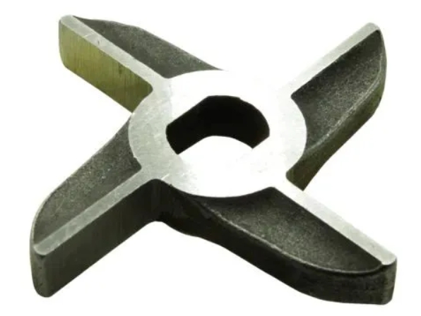 Нож двухсторонний к мясорубке МИМ-300 (без бурта), МИМ-300.01.008 используется совместно с мясорубками МИМ-300, МИМ-350М, МИМ-300М-01 на предприятиях общественного питания и торговли. Материал нержавеющая сталь. Размер 75х75х16 мм