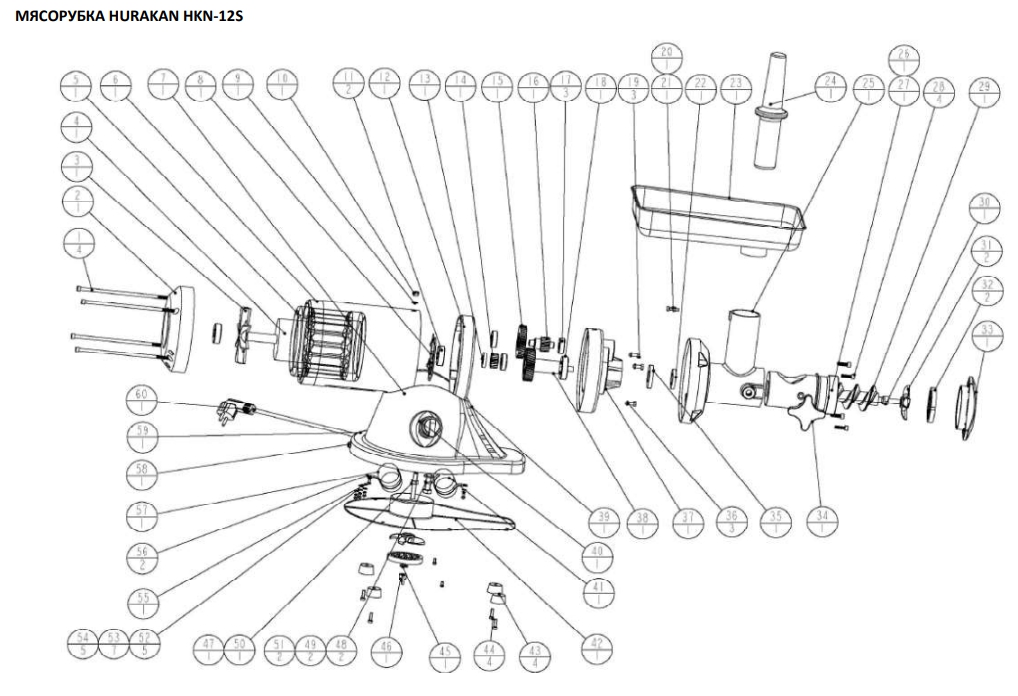 Купить запасные части для оборудования Hurakan. Запасные части для мясорубки Hurakan . Запчасти для промышленных мясорубок.