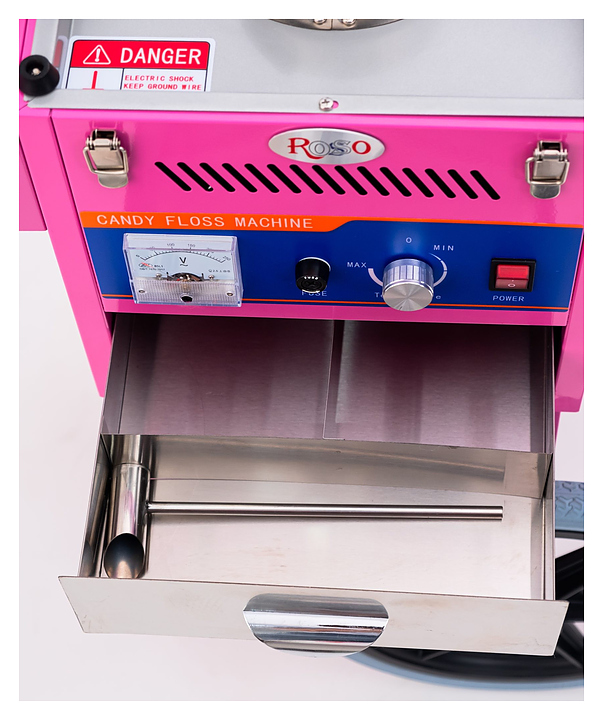 Аппарат для сахарной ваты Rosso HEC-03C используется на предприятиях общественного питания и торговли. Модель оснащена рабочей головкой с ТЭНом, термостатом, вольтметром, выдвижным ящиком для принадлежностей и мобильной тележкой для удобства передвижения. Чаша-ловитель выполнена из нержавеющей стали.