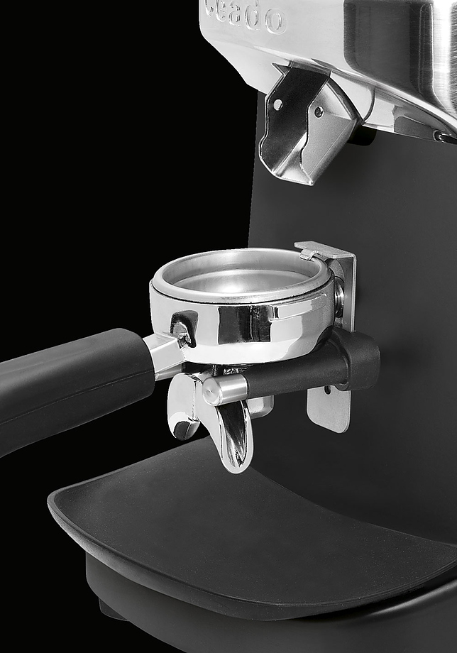 - Стандартная защелка портафильтра: возможность насыпать порции кофе в держатель фильтра, оставляя руки бариста свободными