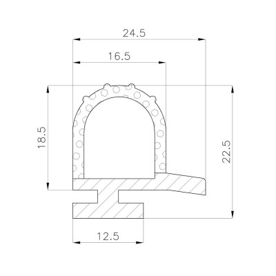 Верхняя часть уплотнителя сделана из мягкой вспененной резины.