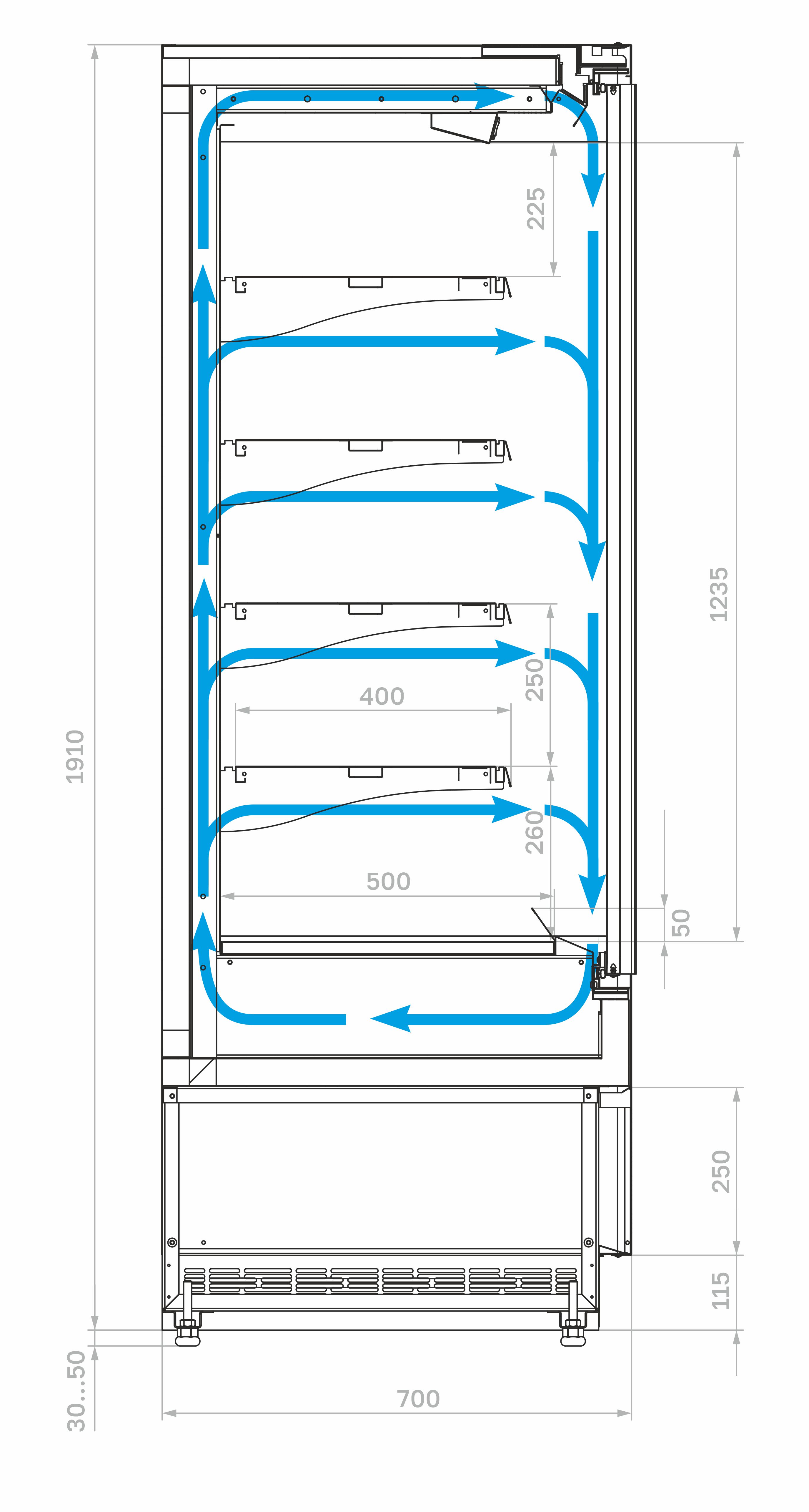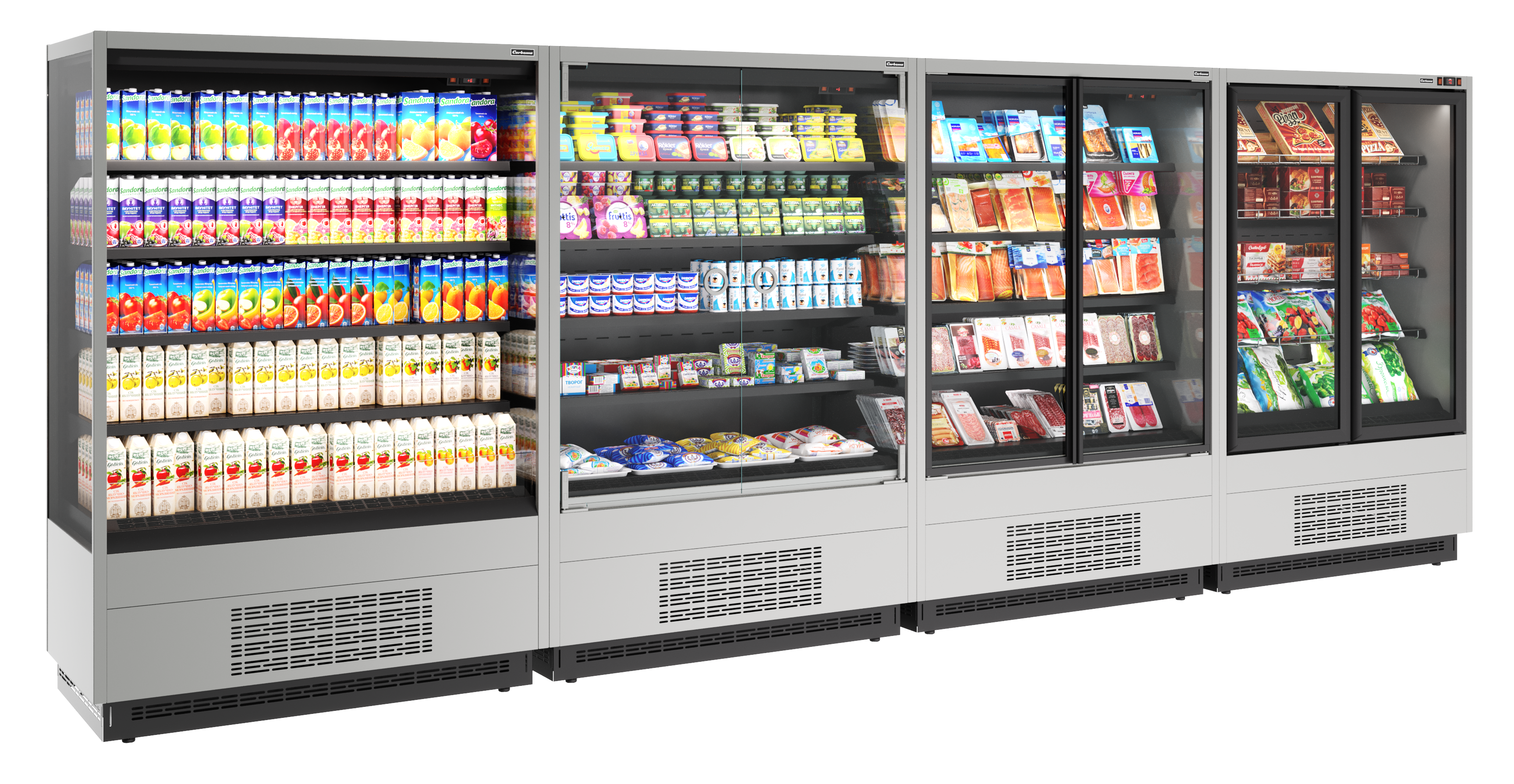 Холодильная горка Carboma FC20-07 VM 0,6-1 0300 LIGHT фронт X0 бок металл (версия 2.0) (9006-9005) позволяет эффективно использовать торговое пространство благодаря компактным внешним размерам и эргономичному кубическому дизайну.