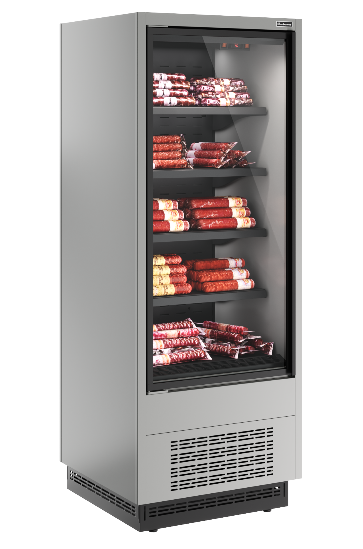 Холодильная горка Carboma FC20-07 VV 0,7-1 STANDARD фронт X1(9006-9005) используется на предприятиях общественного питания и торговли для охлаждения, кратковременного хранения, демонстрации и продажи напитков, мяса, птицы, колбасных, молочных и гастрономических изделий. Позволяет эффективно использовать торговое пространство благодаря компактным внешним размерам и эргономичному кубическому дизайну. Корпус из стали.