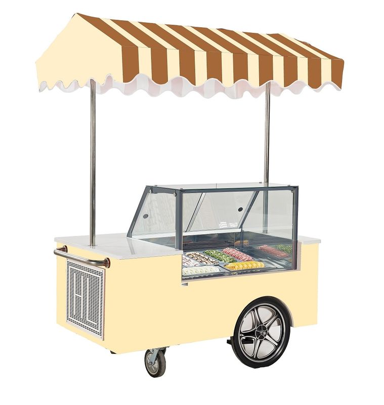 Холодильная витрина-тележка CARPINI EMILY EML-FG10 используется на летних уличных площадках, в помещениях предприятий общественного питания, торговых и развлекательных центров для предпродажной демонстрации и хранения мороженого и сорбета. Модель оснащена подставкой с боковой термовыводящей решеткой и панорамным остеклением с прямым фронтом для оптимального обзора продукции. Фронтальное и боковое остекление выполнено из прозрачного стеклопакета.
