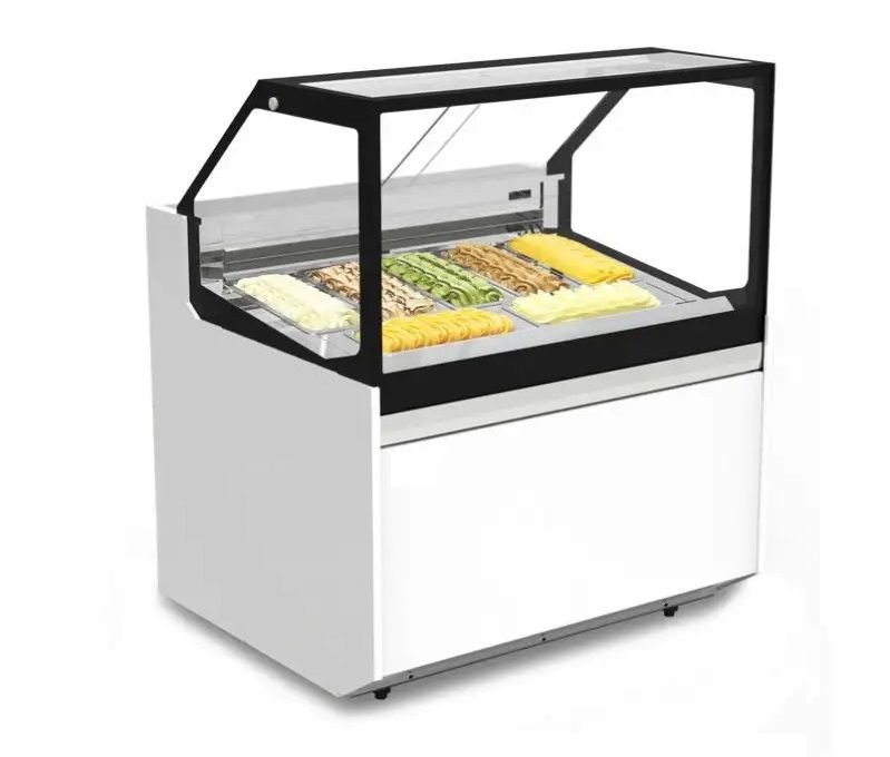 Холодильная витрина-прилавок CARPINI RITA RT 10 используется на предприятиях общественного питания и торговли для демонстрации и хранения мороженого и сорбета. Модель оснащена подставкой с фронтальной термовыводящей решеткой, столешницей со стороны продавца и панорамным остеклением с прямым фронтом для оптимального обзора продукции. Фронтальное и боковое остекление выполнено из прозрачного стеклопакета, внешняя отделка корпуса с поверхностью белого цвета.