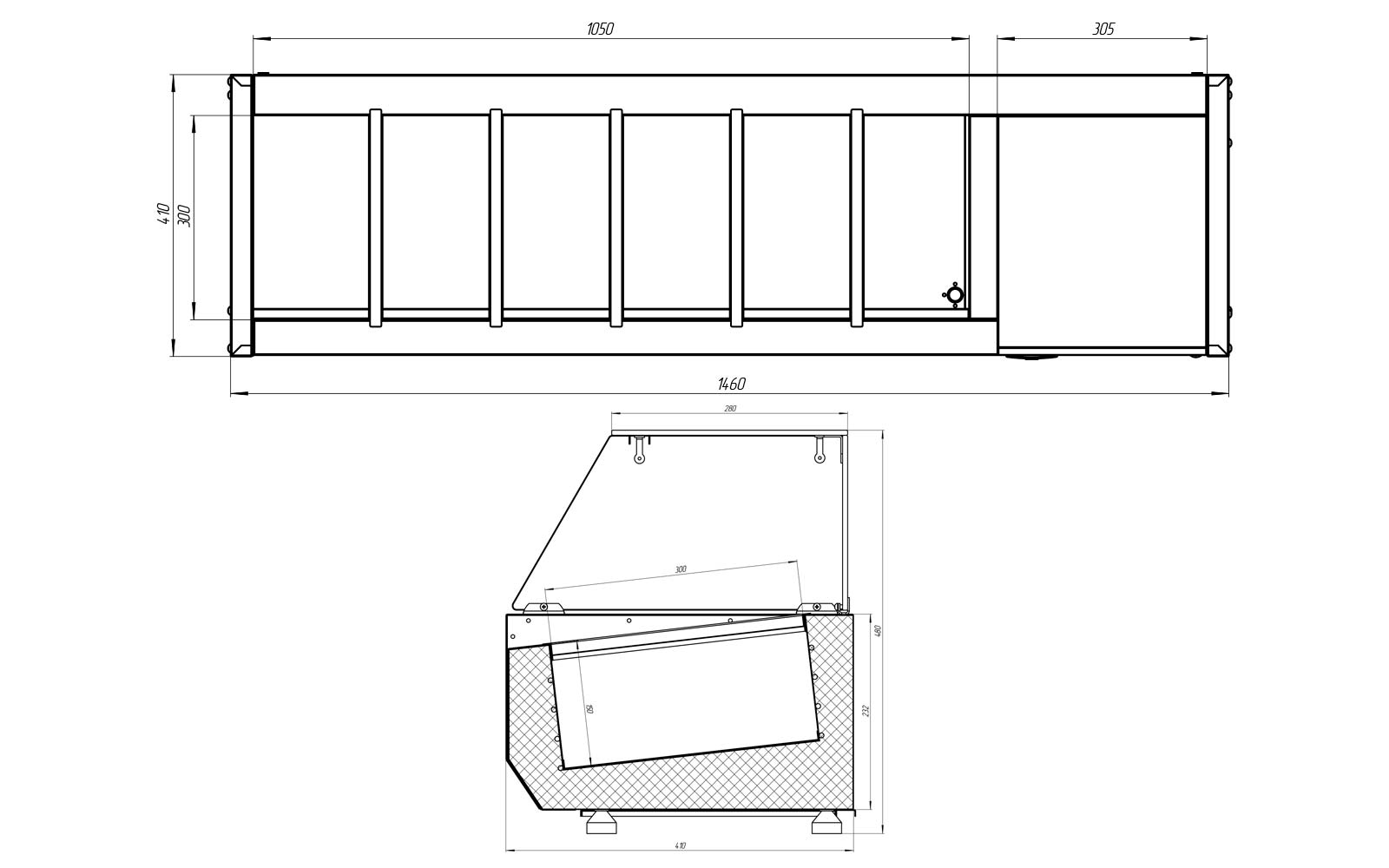 Витрина устанавливается как на бортах гранитной столешницы столов для пиццы TM2ENpizza, так и на любых ровных поверхностях. В том числе – на столешницах холодильных и нейтральных столов, элементах линий раздачи, барных стойках, прилавках и т.п.