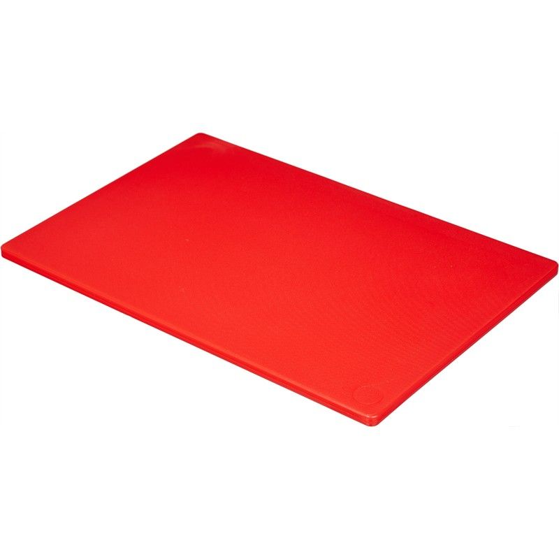 Профессиональная разделочная доска MACO 600х400х18 мм предназначена для нарезки продуктов на предприятиях общественного питания и торговли. Изготовлена из пищевого полиэтилена высокой плотности, устойчивого к образованию царапин под воздействием лезвия ножа. Доски красного цвета в соответствии с нормами HACCP предназначены для разделки сырого мяса.