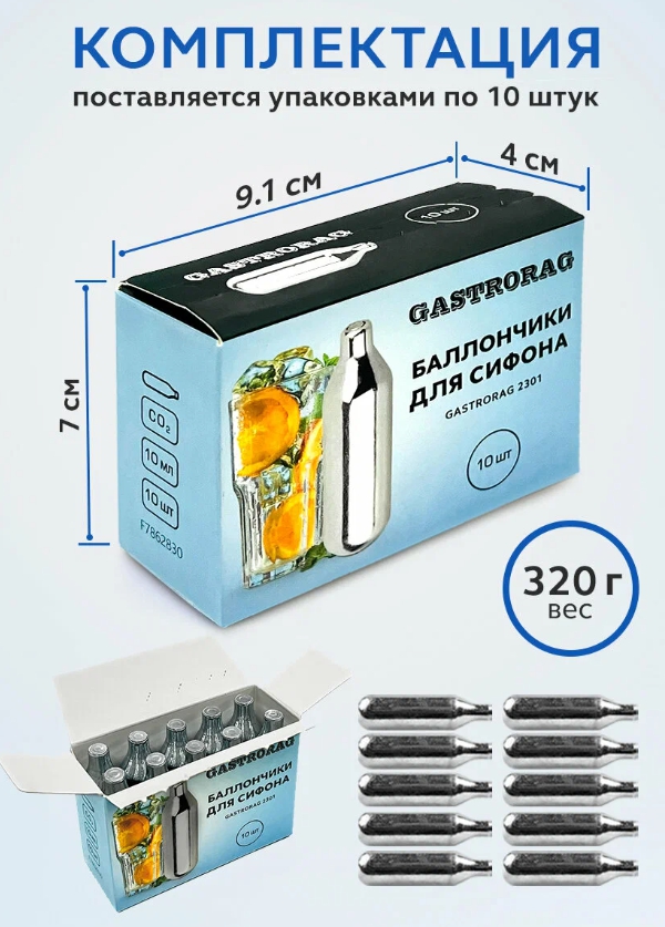 Баллончики для сифона GASTRORAG 2301 предназначены для газирования напитков. Изделие выполнено из углеродистой стали.