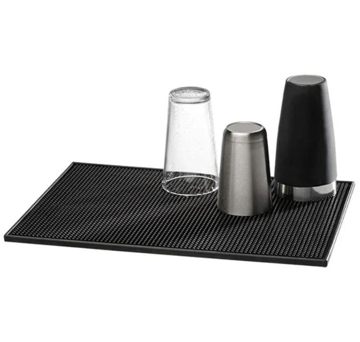 Барный коврик MVQ используется в барах, ресторанах и кафе для поддержания стоек с раздачей напитков в чистоте. Поверхность изделия покрыта шипами, которые предотвращают скольжение предметов по его поверхности и позволяют задерживать стекающую с посуды или случайно пролитую жидкость. Коврик выполнен из высококачественной резины, которая легко моется и не впитывает запахов.