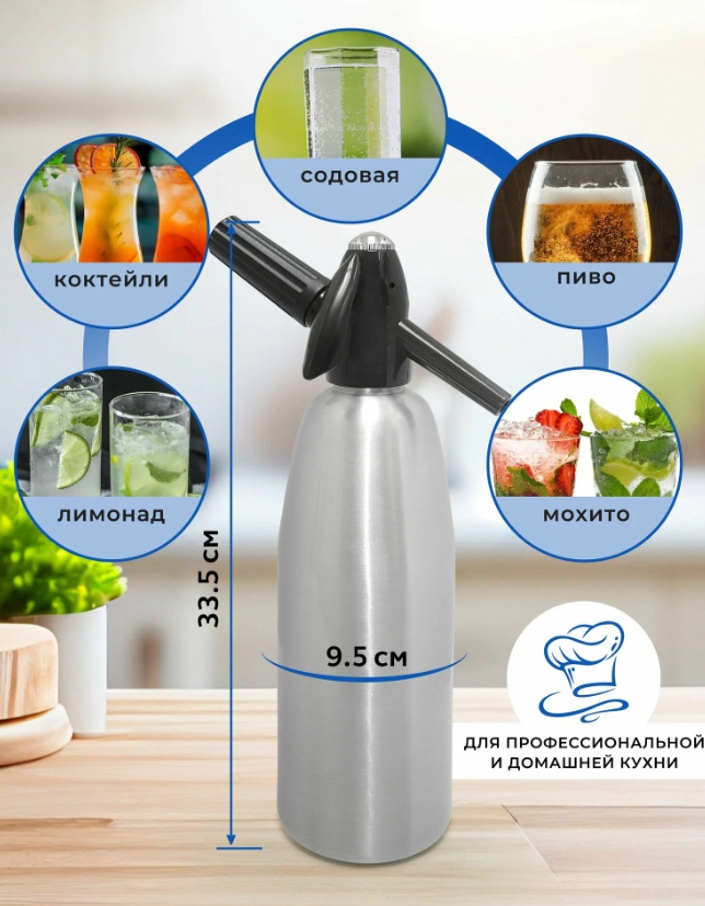- Одного баллончика достаточно для приготовления 1 л газированной воды