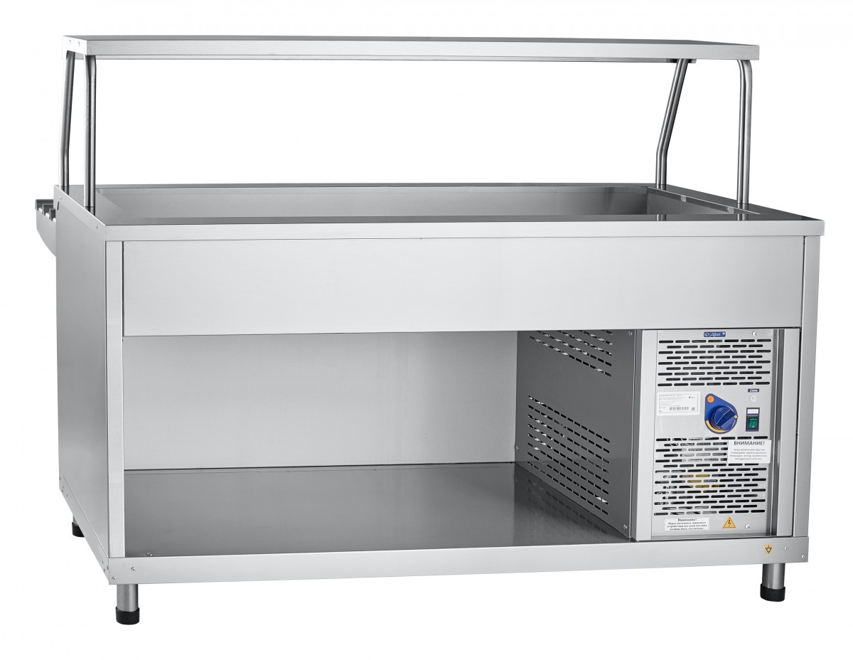 Прилавок холодильный ПВВ(Н)-70КМ-03-НШ вся нерж. с ванной, нейтральный шкаф (1500мм). Предназначен для хранения, демонстрации и раздачи холодных закусок, третьих блюд и охлажденных напитков потребителю. Плавная регулировка температуры от 1 до 10С. Охлаждаемая ванна имеет большую полезную площадь и особенно удобна для выкладки напитков в бутылках. Полка над прилавком служит для выкладки порционных блюд или напитков и имеет лампу подсветки. Направляющие для подносов и полки входят в комплект поставки. Прилавок имеет регулируемые по высоте ножки.