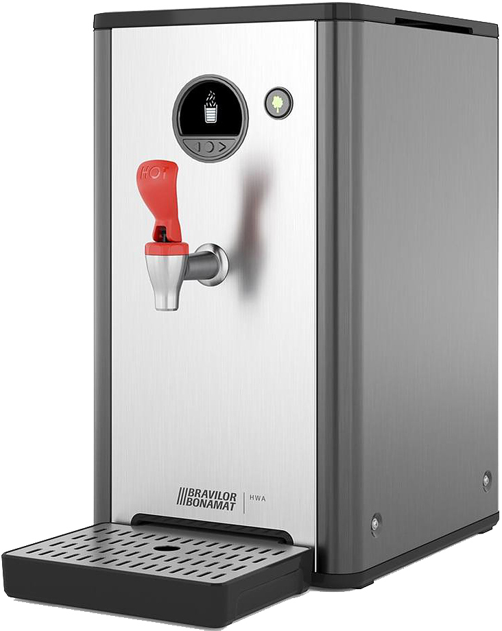 Водонагреватель Bravilor Bonamat HWA 6 предназначен для кипячения и поддержания нужной температуры воды для заваривания чая, травяных настоев. Модель оснащена дозирующим краном без потока, быстрым нагревом воды и поддоном для капель. Корпус выполнен из нержавеющей стали.