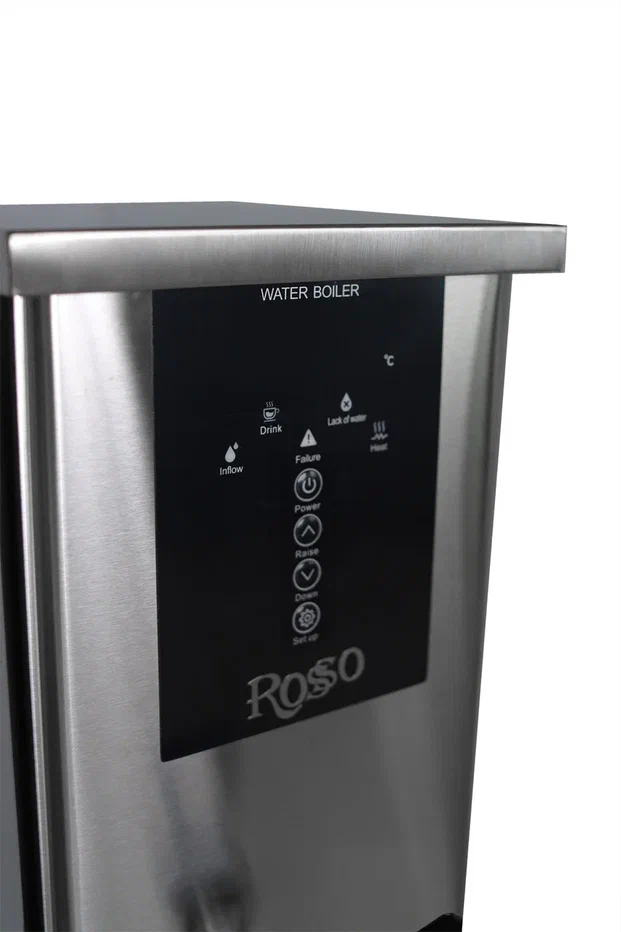 Электрокипятильник ROSSO LXS015 проточного типа предназначен для быстрого нагрева воды и поддержания ее температуры в течение длительного времени на предприятиях общественного питания и торговли. Модель оснащена электродами, посылающими сигнал на микрокомпьютер, который активирует нагревательный элемент и электромагнитный клапан, регулируя температуру и объем подачи воды. Корпус выполнен из нержавеющей стали.