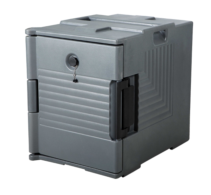 Термоконтейнер ViattoJW-SIF с фронтальной загрузкой изготовлен из прочного полиэтилена с пенополиуретановой изоляцией. Он предназначен для хранения и транспортировки вторых блюд, гарниров, салатов в гастроемкостях из нержавеющей стали. Продукты сохраняют температуру в течение 4 часов.