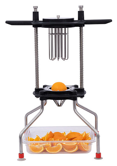 Устройство для нарезки фруктов на 6 частей CanCan 1315-2 используется в гостиницах, ресторанах, кафе на предприятиях общественного питания и торговли для нарезки овощей и фруктов на 6 частей. Прибор экономит время и повышает эффективность, быстро и аккуратно нарезая на равные порции. Модель оснащена нескользящими ножками-присосками для безопасности. Каркас выполнен из нержавеющей стал