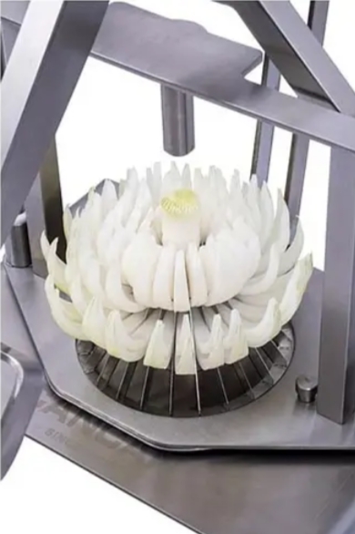 Овощерезка CanCan 1319 используется в гостиницах, ресторанах, кафе и на других предприятиях общественного питания и торговли для нарезки лука в форме цветка. Нескользящие ножки-присоски надежно фиксируют машину и предотвращают нежелательное передвижение в процессе работы. Лезвия выполнены из нержавеющей стали, которая полностью подходит для контакта с пищевыми продуктами и обеспечивает длительное использование.