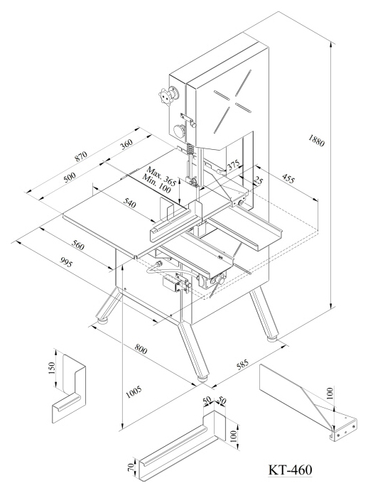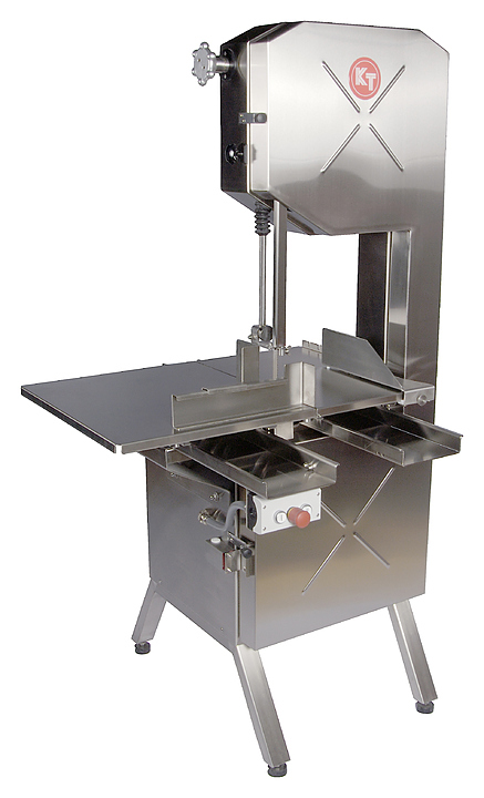 Пила для мяса Koneteollisuus Oy (KT) КТ-460 используется на предприятиях пищевой промышленности и торговли для нарезки на куски свежего и замороженного мяса, рыбы и птицы. Модель с 2 скоростями оснащена подвижным столом и тормозным двигателем, благодаря которому режущее полотно останавливается мгновенно после отключения электропитания. Конструкция выполнена из нержавеющей стали.