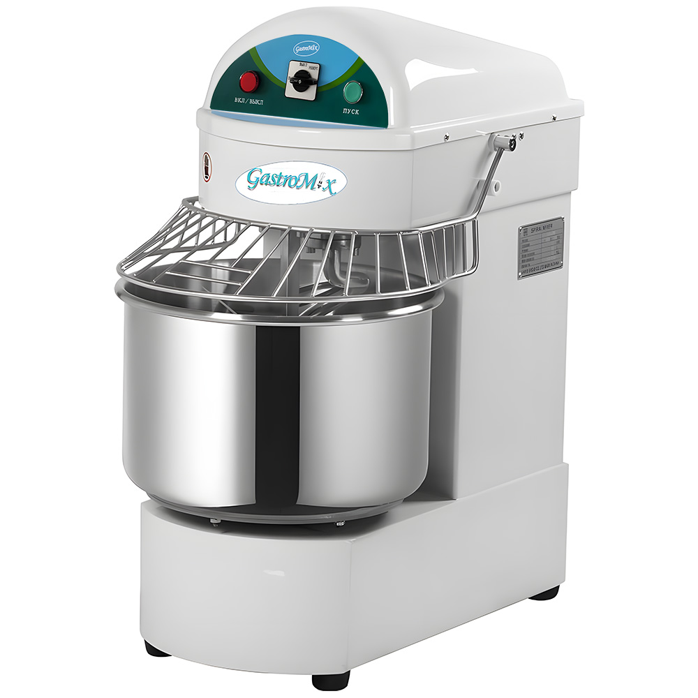 Спиральный тестомес GASTROMIX HS20A используется на предприятиях общественного питания и торговли, в пекарнях и кондитерских для замеса различных видов теста с влажностью не более 50%, которое подходит для выпечки хлебобулочных или кондитерских изделий. Корпус выполнен из окрашенной стали, дежа, защитная решетка и спираль - из нержавеющей стали.