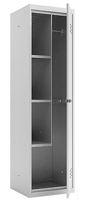 Хозяйственный шкаф Церера ШРХ11 L 500 (1850x500x500 мм) предназначен для хранения одежды и инвентаря на предприятиях, в ресторанах, столовых, кафе, спортивных и образовательных учреждениях и т.д. Состоит из одной секции, которая закрывается на замок «Euro-Locks». Замки с ключами входят в комплект поставки. Шкаф разделен на два объема, в одном есть перекладина для вешалки, крючки для одежды, держатель для инвентаря, во втором 3 полки. Шкаф поставляется в разобранном виде, для сборки рекомендуется использовать заклёпочник