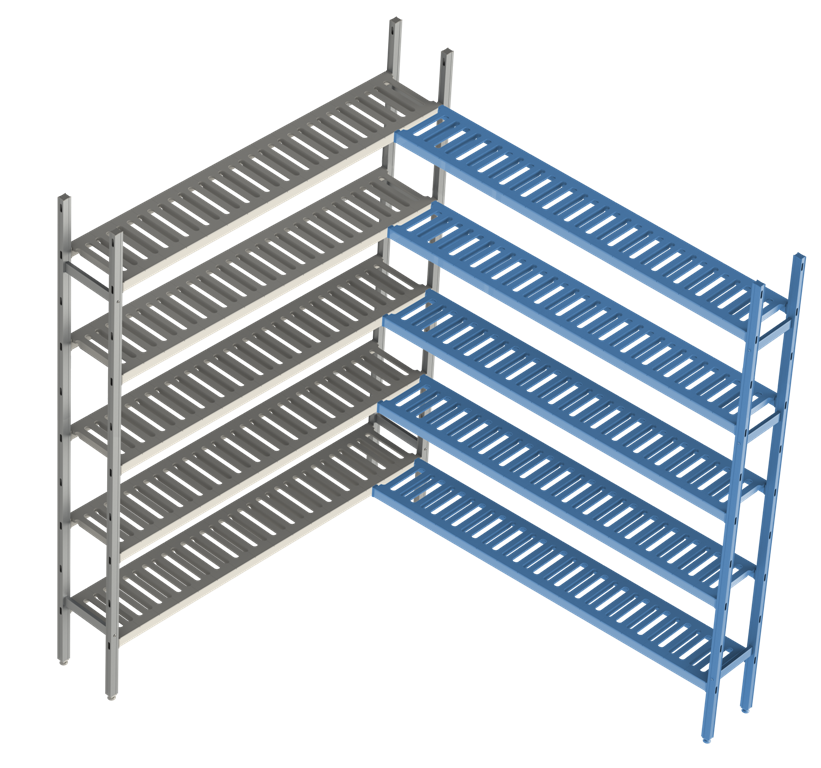 Модульный стеллаж POLAIR LOAD.ME POLY 18AL.5PP40.15C (дополнительная секция, 5 ярусов) предназначен для хранения продукции в холодильных и морозильных камерах, кухнях, лабораториях, на предприятиях общественного питания и торговли. Модель оснащена 5 регулируемыми по высоте полками-решетками (шаг регулировки: 150 мм) и ножками. Каркас выполнен из анодированного алюминиевого профиля, полки - из полипропилена, ножки - из прочного композитного сплава.