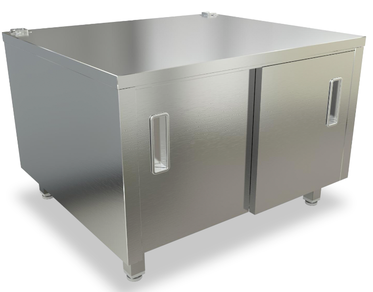 Закрытая подставка Техно-ТТ СПИ-834/807 предназначен для установки на нее индукционных плит ИПП-410134, ИПК-410114, грилей ИПГ-240184, ИПГ-240164 и нейтральных модулей МН-90/800 и МН-91/800, а также для хранения кухонного инвентаря на предприятиях общественного питания и торговли. Модель оснащена дверями-купе, 1 сплошной полкой и регулируемыми по высоте ножками, что позволяет компенсировать неровности пола. Сварной каркас и полка выполнены из нержавеющей стали AISI 430.