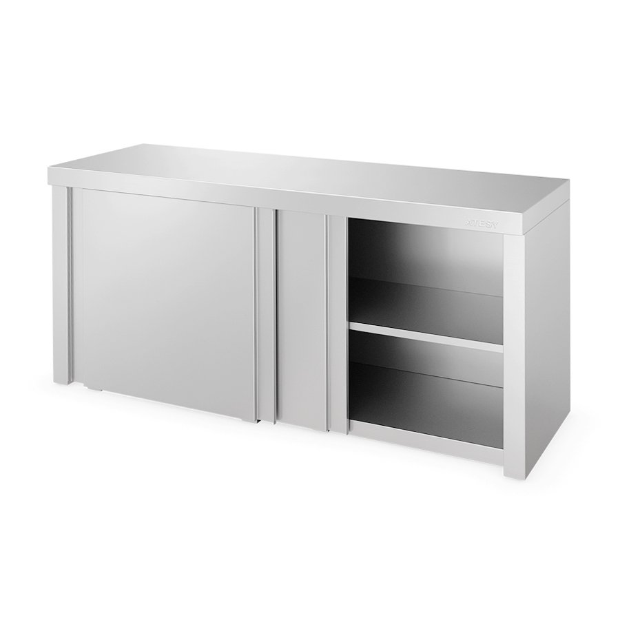 Кухонная полка ATESY ПЗК-С-1100.420.640-02-К серии Стандарт используется для хранения кухонного инвентаря, посуды и продуктов питания на предприятиях общественного питания и торговли. Полка выполнена из нержавеющей стали AISI 430, задняя стенка - из оцинкованной стали толщиной 1,2 мм, двери - из нержавеющей стали.