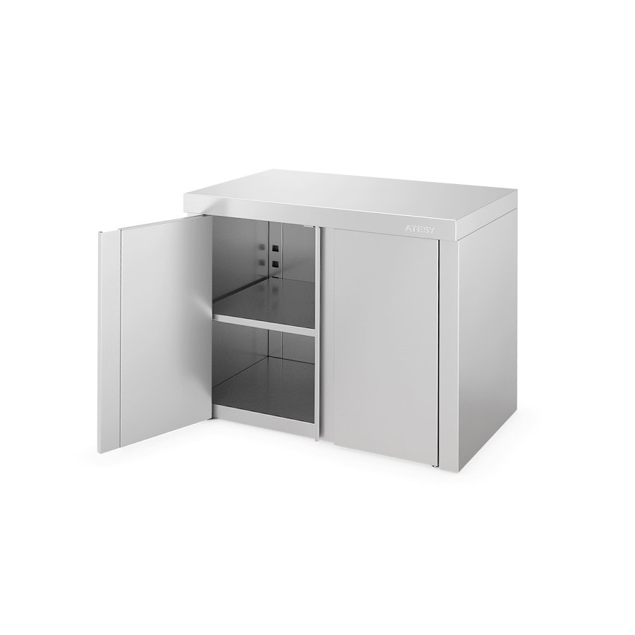 Кухонная полка ATESY ПЗК-С-800.420.640-02-К серии Стандарт используется для хранения кухонного инвентаря, посуды и продуктов питания на предприятиях общественного питания и торговли. Полка выполнена из нержавеющей стали AISI 430, задняя стенка - из оцинкованной стали толщиной 1,2 мм, двери - из нержавеющей стали.