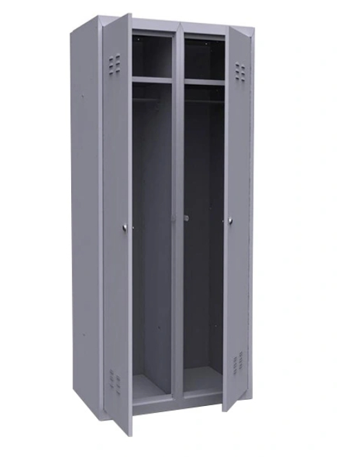 Шкаф металлический для одежды ШР-22 L800 (1850x800x500мм), двухсекционный. Предназначен для хранения одежды на предприятиях, в спортивных, образовательных учреждениях и пр. В каждой секции имеется два крючка для одежды, перекладина для вешалки. Шкаф для одежды имеет отверстия для вентиляции на каждой двери и проушину под навесной замок. Поставляется в разобранном виде.
