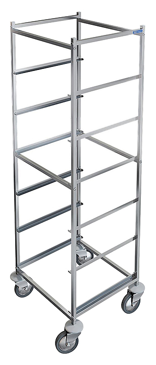 Тележка-шпилька KAYMAN СШ-45/61 используется на предприятиях общественного питания и торговли для транспортировки посудомоечных кассет. Каркас и направляющие выполнены из нержавеющей стали AISI 430.