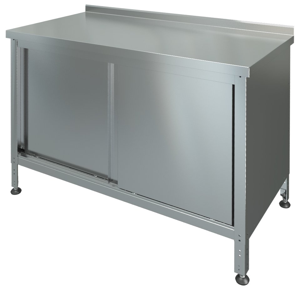 Стол-тумба купе с бортом СТК-1-900/600 МХМ (Марихолодмаш) предназначен для использования в качестве профессионального стола для разделки и последующей обработки пищевых продуктов. Благодаря наличию закрытого объема, столы-тумбы купе обеспечивают аккуратный внешний вид кухни и используются для хранения посуды, инвентаря, столовых приборов и сухих продуктов. Внутри стола имеется полка. Столы оснащены дверями «купе», которые позволяют экономить пространство, так как перемещаются на роликах, а не распахиваются. Все детали стола изготовлены из нержавеющей стали AISI 430.