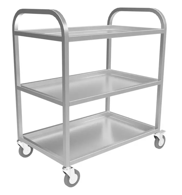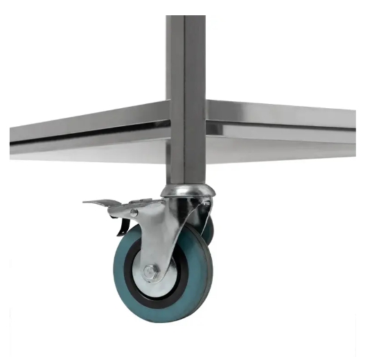 Тележка Кобор ТС2-80/50 применяется для перевозки готовых блюд, продуктов, а также инвентаря на кухне и из зала общественного питания. Тележка оснащена 3 полками глубиной 30 мм, изготовленных из нержавеющей стали, каркас произведен из нержавеющей квадратной трубы 25х25 мм. Перемещение тележки осуществляется за счет четырех поворотных колес диаметром 100 мм, два из которых имеют тормоз.