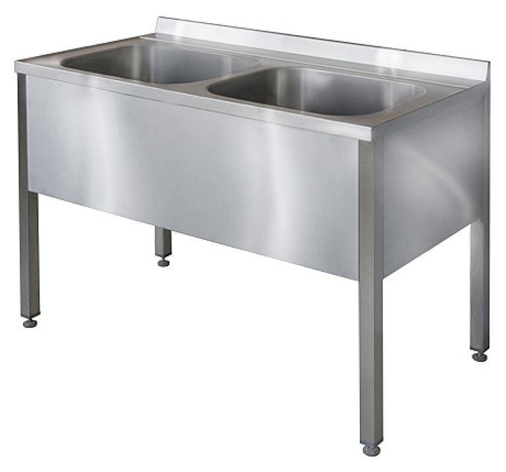 Моечная ванна двойная ITERMA ВЦ-24/1200/600 используется на предприятиях общественного питания и торговли для мытья посуды, инвентаря и продуктов. Мойка ванны цельнотянутая с шумопоглощающей изоляцией снизу, выполнена из пищевой нержавеющей стали марки AISI 304 толщиной 1мм и имеет отгибы, которые исключают травмирование персонала, а также объемный пристенный борт. Отличительной особенностью цельнотянутых ванн является наличие обнижения, которое не позволяет воде попадать за пределы столешницы. Каркас изготовлен из нержавеющей стали марки AISI 304. Ножки ванны снабжены регуляторами высоты, что позволяет устранить неровности пола. Ванны комплектуются сифоном.