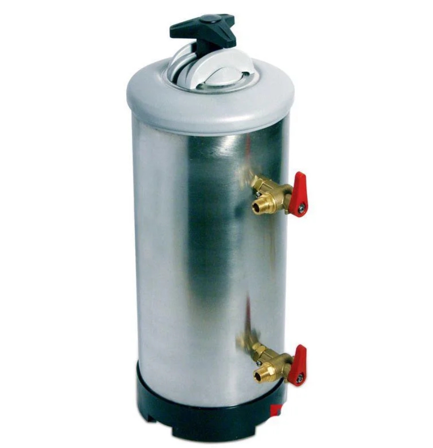 Соляной водоумягчитель Silanos 8 л используется на предприятиях общественного питания и торговли для смягчения и декальцинирования водопроводной воды совместно с профессиональным кухонным оборудованием, потребляющим низкое количество воды: с льдогенераторами, пищеварочными котлами, картофелечистками, кофемашинами, посудомоечными машинами, тепловым оборудованием с функцией парового увлажнения и др. кухонным оборудованием на предприятиях пищевой промышленности, общественного питания и торговли. Изделие оснащено химически активной смолой, регенерируемой с помощью поваренной соли. Корпус выполнен из нержавеющей стали AISI 304.