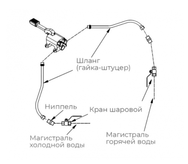 Гибкая подводка для воды (гайка-штуцер) 1/2" длина 500 мм 2шт, нипель латунный 1/2" - 2шт., кран шаровой 1/2" - 2шт. Педаль в комплект не входит