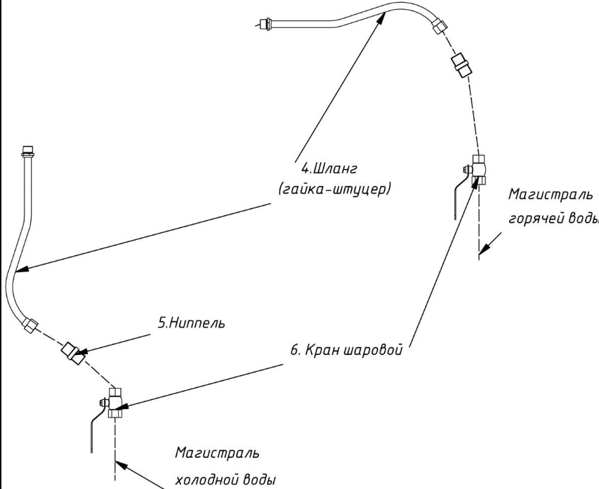 - Комплект сантехнической арматуры для подключения холодной воды