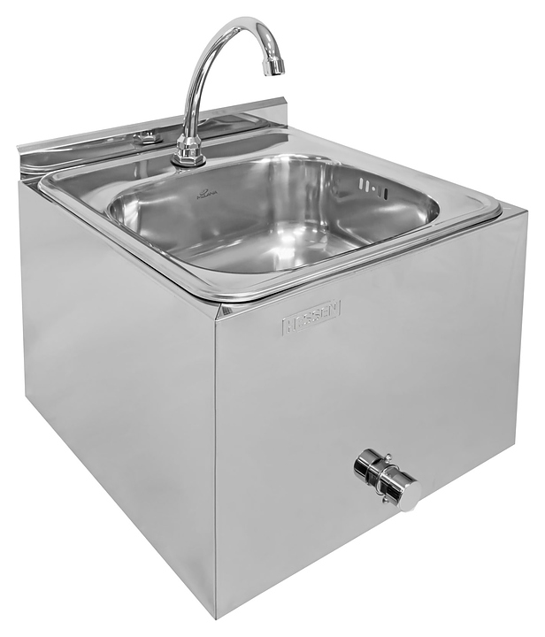 Настенный рукомойник Hessen РНБ 4*3 используется на предприятиях общественного питания и торговли, а также в производственных цехах для мытья рук персонала. Модель оснащена отверстием под смеситель и крепится на стену, что позволяет установить его на удобной для персонала высоте. Каркас выполнен из высококачественной нержавеющей стали AISI 430.