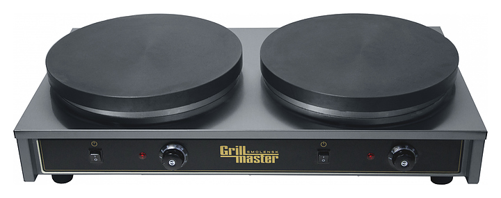 Блинница GRILL MASTER Ф2БЭ предназначена для выпекания блинов на предприятиях общественного питания и торговли. Модель оснащена с 3 нагревательными спиралями в каждом жарочном диске для идеального нагрева поверхности. Корпус выполнен из нержавеющей стали.