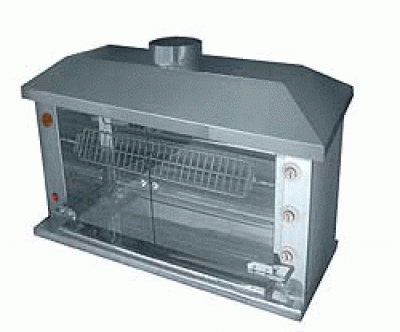 Рамная конструкция, цепная передача вращения шампуров, полный газ.контроль.Гриль на 20 тушек, 3 шампура в первом ряду+2 шампур во втором ряду, выполнен полностью из нержавеющей стали, готовит курицу за 55 минут.