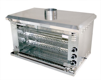 Гриль карусельный газовый на 30 тушек, 5 люлек (корзин для курицы и субпродуктов, 4 горелки с системой газ-контроль, 4 регулирующих крана, передние дверцы из закаленного стекла, задняя стенка - полностью из закаленного стекла, в камере подсветка, выполнен полностью из нержавеющей стали, газовая мощность 16.8 кВт