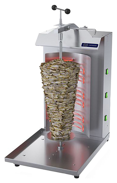 Гриль для шаурмы KAYMAN ШЭ-ОЦ-3-РП А предназначен для жарки свиного, бараньего или куриного мяса, предварительно прошедшего процесс маринации, использованного для приготовления шаурмы, на предприятиях общественного питания.