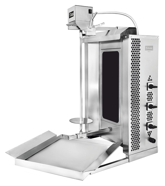 Гриль для шаурмы T-LUX SMU-3 используется на предприятиях общественного питания и торговли для обжарки большого количества различных видов мяса и птицы для приготовления начинки из рубленного мяса для шаурмы и других блюд. Корпус выполнен из нержавеющей стали AISI 304.