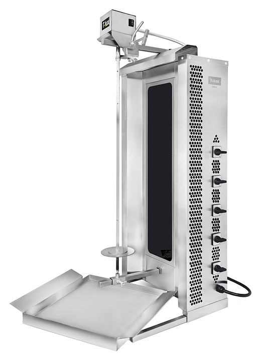 Гриль для шаурмы T-LUX SMU-5 используется на предприятиях общественного питания и торговли для обжарки большого количества различных видов мяса и птицы для приготовления начинки из рубленного мяса для шаурмы и других блюд. Корпус выполнен из нержавеющей стали AISI 304.