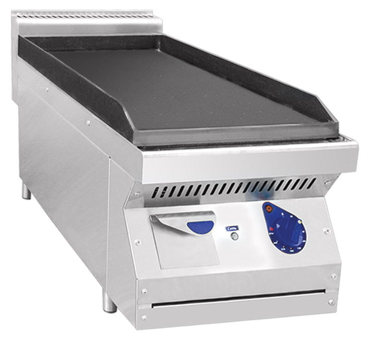Поверхность для обжарки имеет желоб для стекающей жидкости и снабжена по периметру бортиком, позволяющим предотвратить разбрызгивание жира. Время разогрева камеры до максимальной температуры конфорок не более 25 мин.