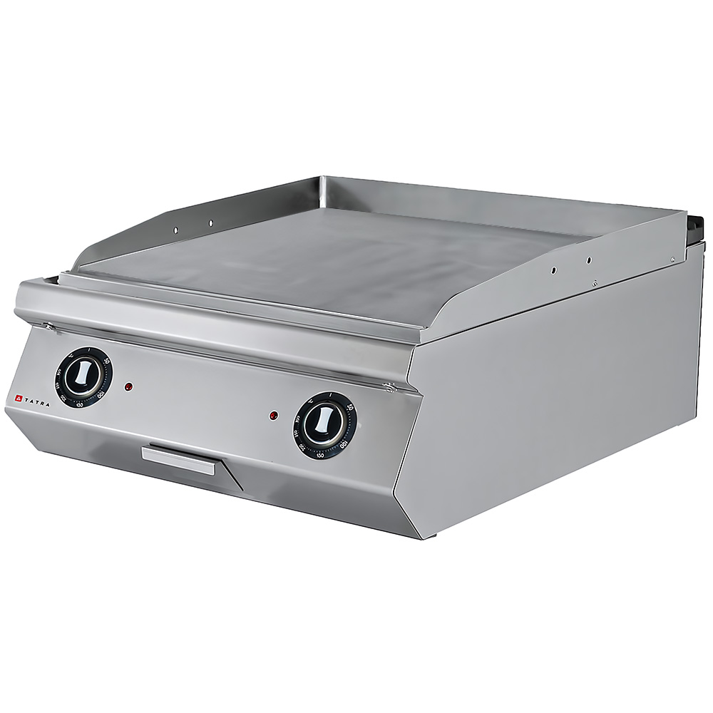 Жарочная поверхность Tatra TET.89S предназначена для жарки мяса, птицы, рыбы, овощей и быстрого разогрева полуфабрикатов на предприятиях общественного питания и торговли. Модель оснащена гладкой жарочной поверхностью с двумя зонами нагрева с независимой регулировкой, электромеханической панелью управления с термостатом, регулируемыми ножками и съемной емкостью для сбора жира. Корпус выполнен из нержавеющей стали.