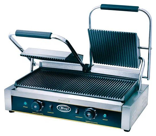 Прижимной гриль ROSSO HSG57E PRO предназначен для жарки мяса, рыбы, птицы, овощей, бутербродов и сэндвичей на предприятиях общественного питания и торговли. Модель оснащена терморегулятором, индикатором нагрева и поддоном для сбора жира. Корпус выполнен из нержавеющей стали.