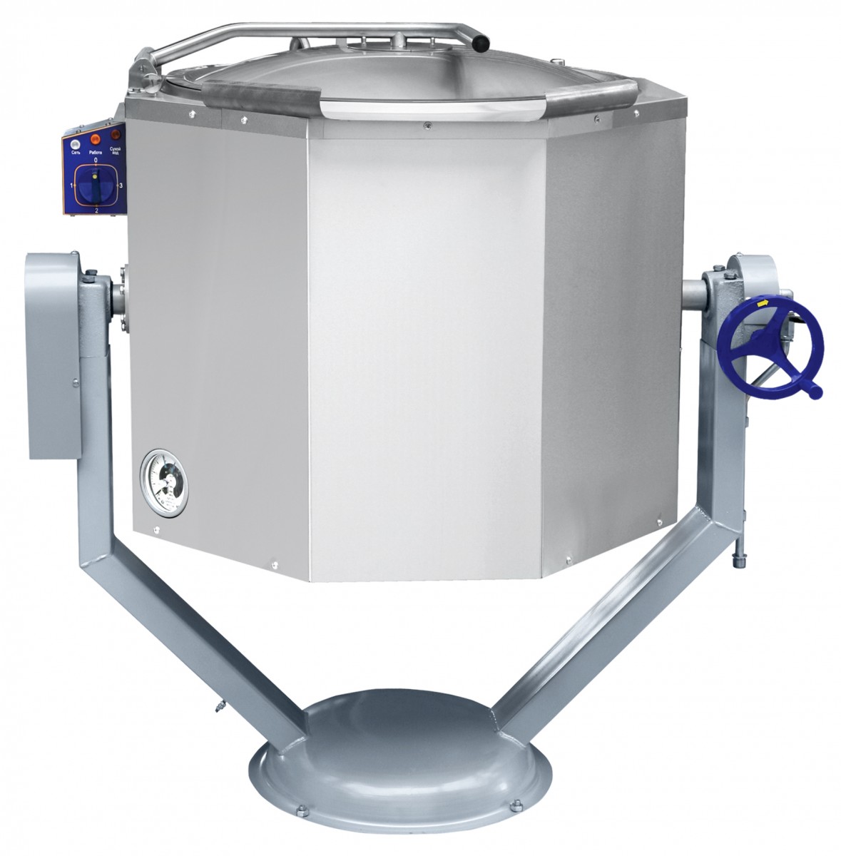 Слив готового продукта осуществляется путем ручного опрокидывания варочного сосуда. Рабочая температура приготовления до +100 С.