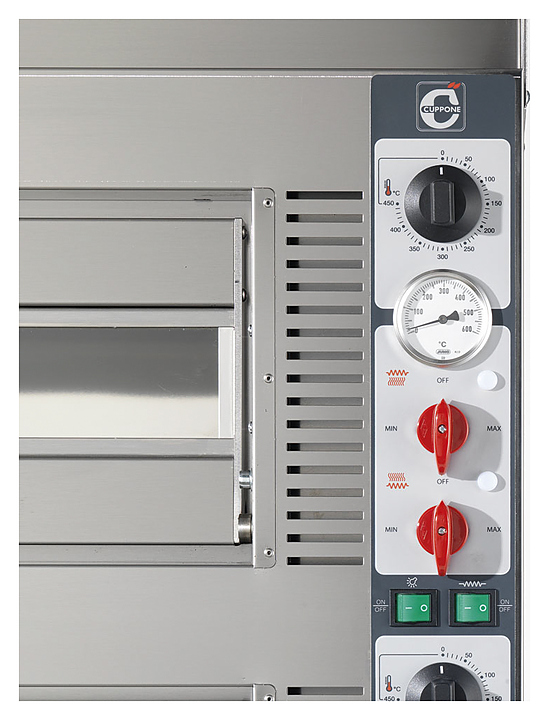 - Вместимость камеры: 6 пицц диаметром 350 мм или 2 пиццы диаметром 500 мм
