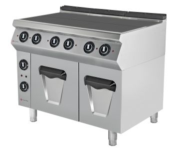 Электрическая плита Tatra TER.127O 700 серии предназначена для приготовления различных блюд в наплитной посуде на предприятиях общественного питания и торговли. Модель оснащена электромеханической панелью управления, жарочным шкафом, 6 конфорками и регулируемыми ножками. Корпус выполнен из нержавеющей стали, конфорки - из чугуна.