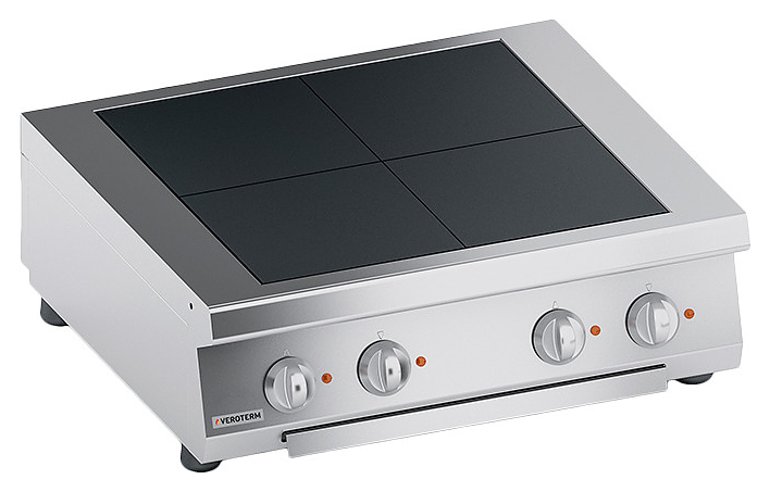 Настольная электрическая плита VEROTERM VT7RUE10TT используется на предприятиях общественного питания и торговли для приготовления широкого ассортимента блюд в наплитной посуде. Модель оснащена рабочей поверхностью с 4 независимыми зонами нагрева и электромеханической панелью управления. Корпус выполнен из нержавеющей стали, конфорки – из чугуна.